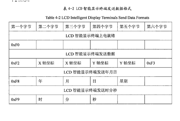 密集架主機控制板從觸摸顯示屏終端讀取數據是通過UART中斷來接收線路上發過來的數據。密集架主機控制板在觸摸顯示屏終端上電就緒時會接收到字節OXf,0,當觸點按下時會在數據線路上發送一個六個字節的數據字符串,觸摸屏顯示終端要向主機控制板上發送年月日和時分秒的命令的前提是單片機必須先請求從顯示終端讀取該命令,其格式如表4一2所示。